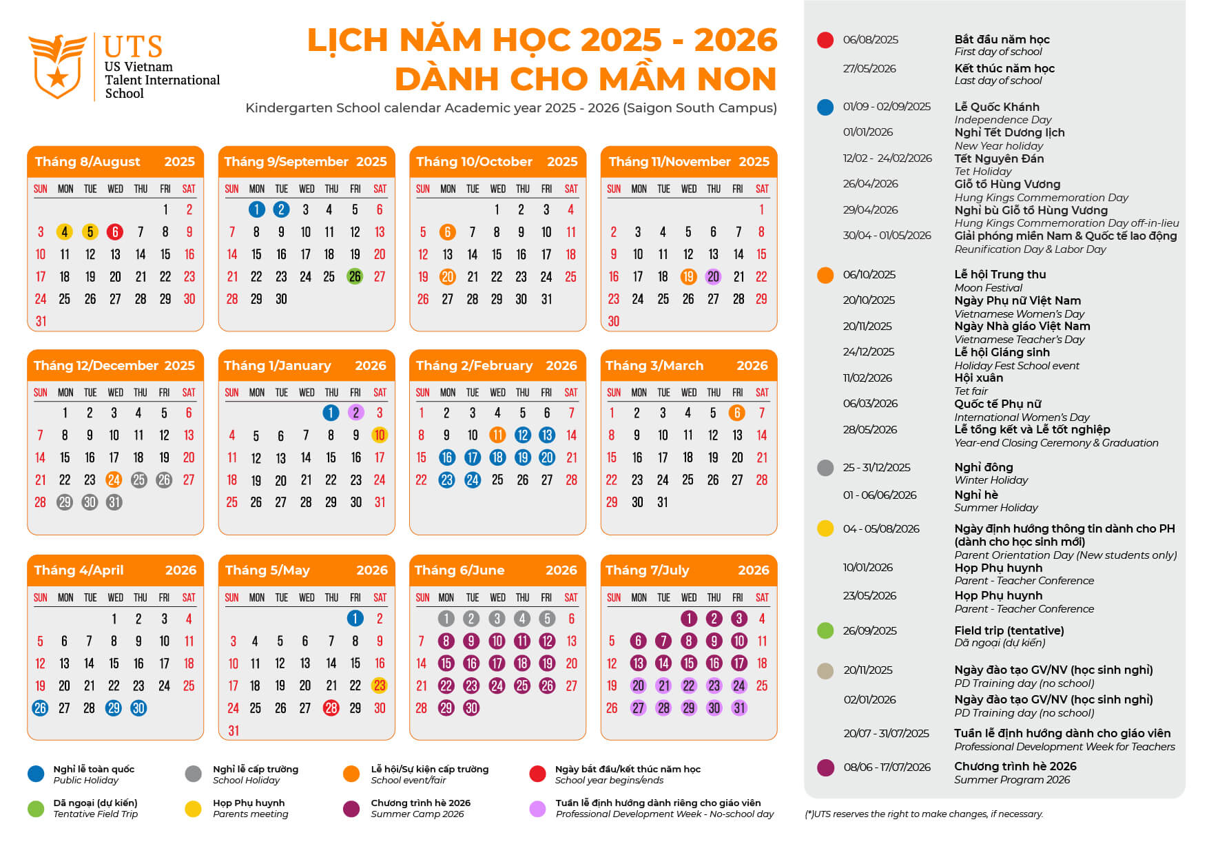 • Cấp mầm non (UTS Cơ sở Saigon South)