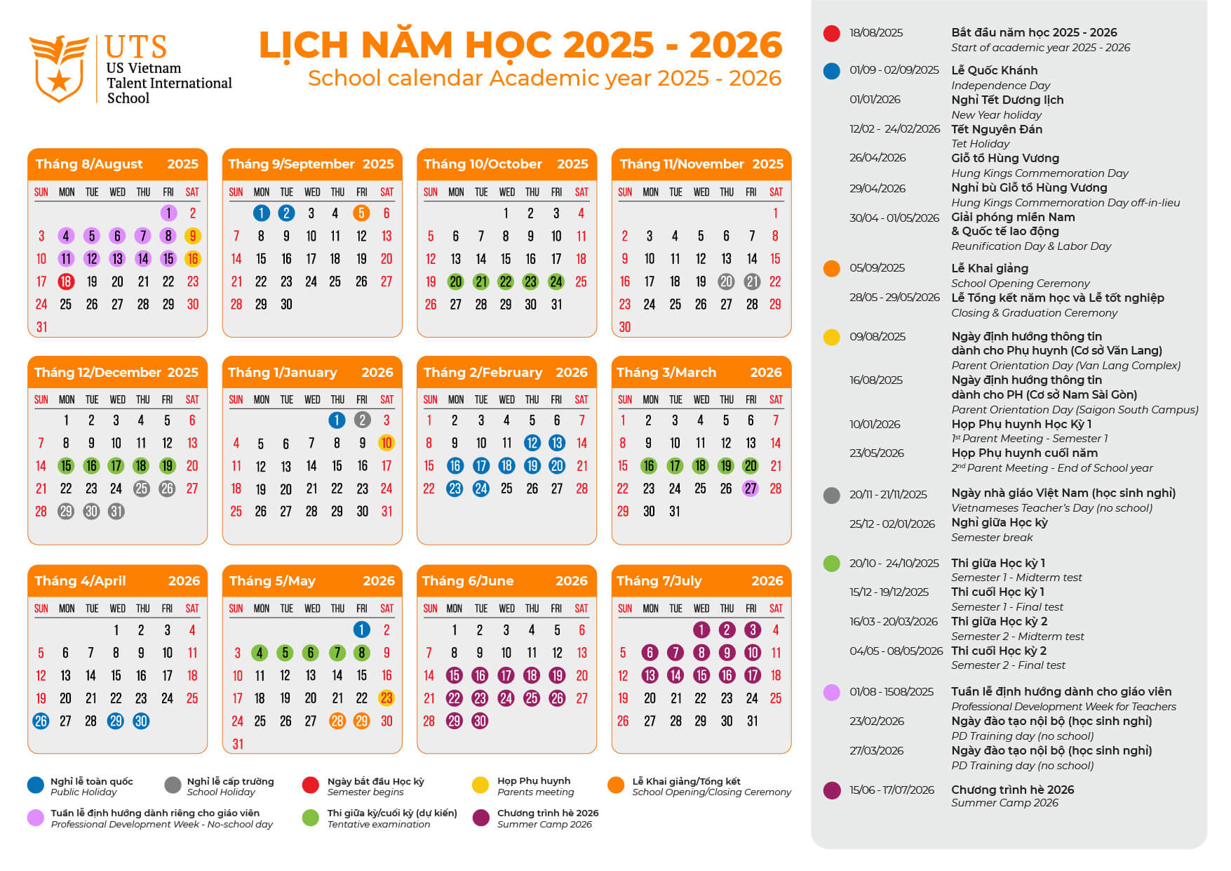 CẨM NANG HỮU ÍCH LỊCH NĂM HỌC